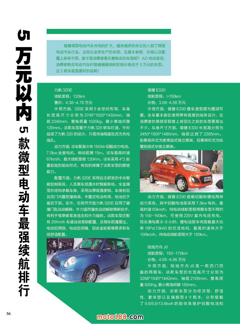 内56 5万元以内 5款微型电动车最强续航排行
