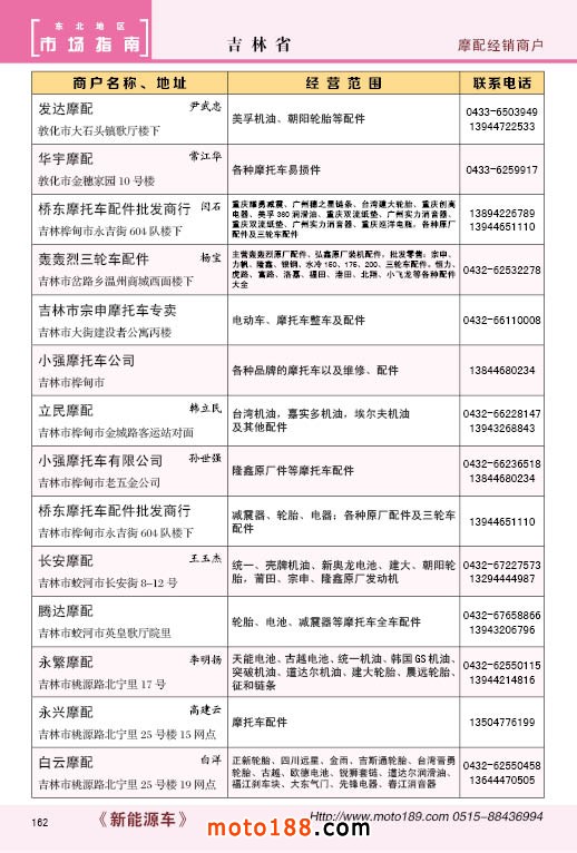 中国摩配市场从上世纪九十年代开始经过高速度的发展,正逐步减速,摩托车行业也渐呈式微,与之紧密相关的后市场的配件与维修也呈逐步下滑之势,取代摩托车的在发达地区是汽车,欠发达地区是电动两轮、电动三轮,甚至电动四轮车,随着经济的发展,出行的多样化,也给了消费者多重的选择。目前现有的摩托车及配件市场,也不再是以纯摩托车为主体,有的市场电动车取代了摩托车,有的商店也是混合经营,这些变化在《市场指南》里面都有所反应。这次《北方指南》一些小市场不再单列,并入到相应的省份中去;以前去市场的公交线路,书中也不再列入,因为现在的地图导航功能十分强大,既新又准。