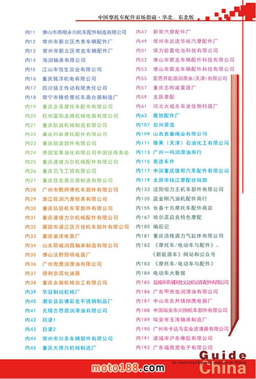 中国摩配市场从上世纪九十年代开始经过高速度的发展,正逐步减速,摩托车行业也渐呈式微,与之紧密相关的后市场的配件与维修也呈逐步下滑之势,取代摩托车的在发达地区是汽车,欠发达地区是电动两轮、电动三轮,甚至电动四轮车,随着经济的发展,出行的多样化,也给了消费者多重的选择。目前现有的摩托车及配件市场,也不再是以纯摩托车为主体,有的市场电动车取代了摩托车,有的商店也是混合经营,这些变化在《市场指南》里面都有所反应。这次《北方指南》一些小市场不再单列,并入到相应的省份中去;以前去市场的公交线路,书中也不再列入,因为现在的地图导航功能十分强大,既新又准。