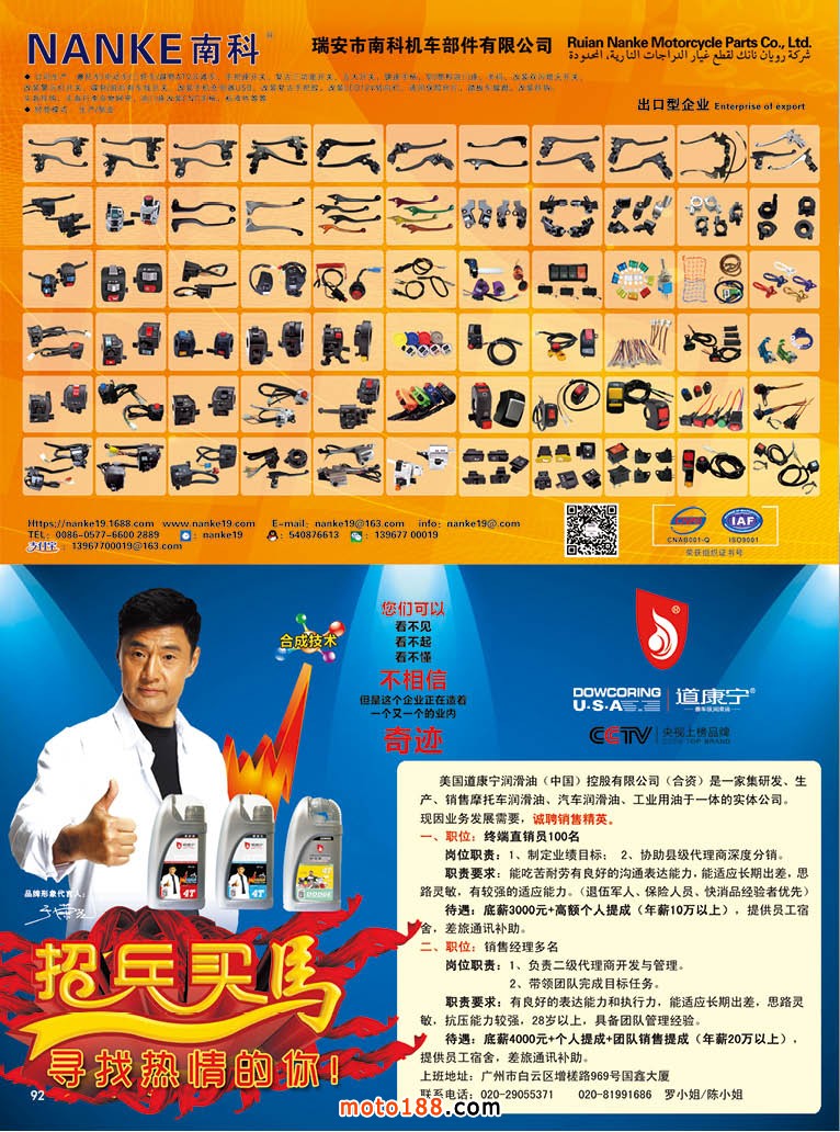 我们杂志新开辟的《外贸专题》,将欢迎从事外贸的企业,向我们提供稿件,你的成功让大家来分享,失败的教训也能让同行引以为戒。为了办好这个栏目,我们高薪诚聘在摩配行业或者在媒体行业有二年以上工作经验的英才加入我们的团队,专门服务于广州市场的外贸以及国外采购企业。