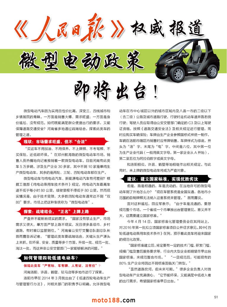 内51 《人民日报》权威报道微型电动政策即将出台!