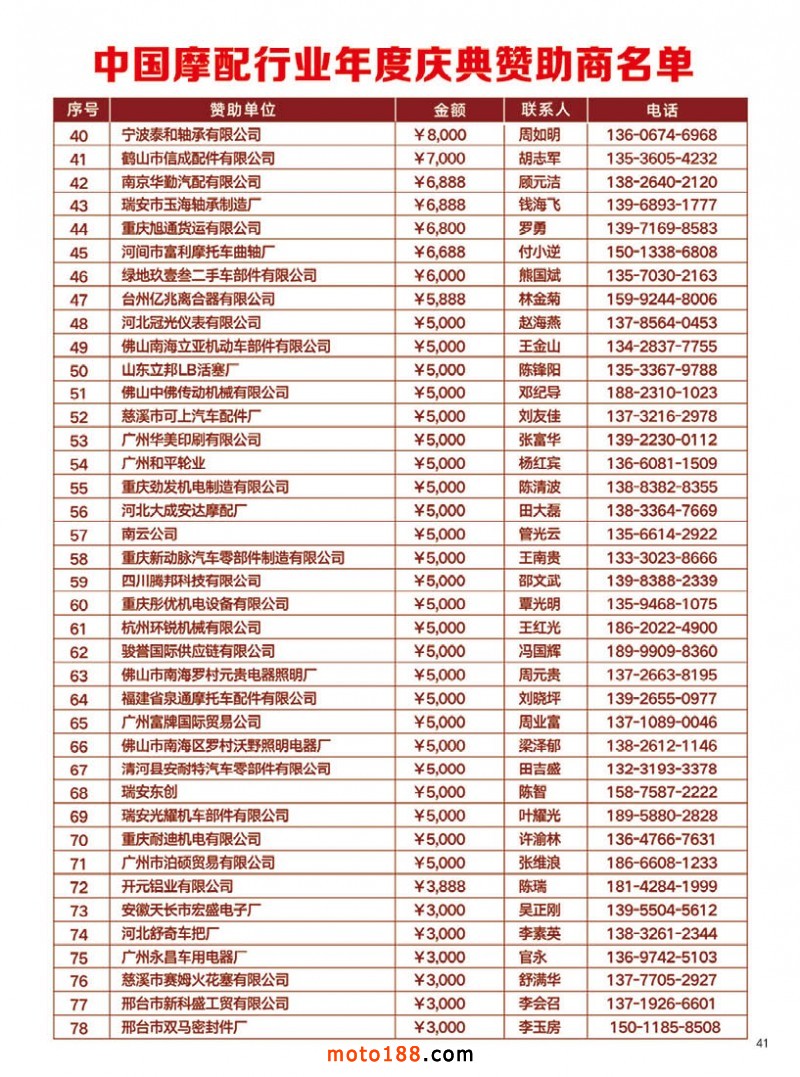 内41 中国摩配行业年度庆典赞助商名单