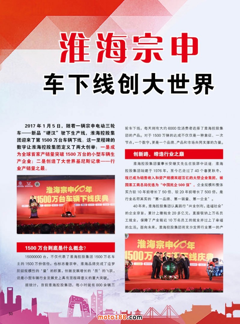 内50 淮海宗申第1500万台车下线 创大世界基尼斯记录