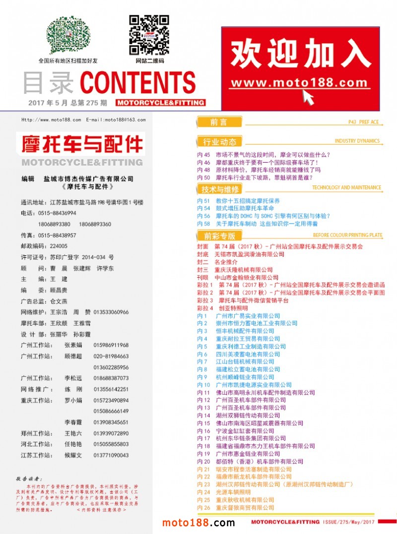 2017.5月《摩托车/电动车与配件》杂志,欢迎大家阅读