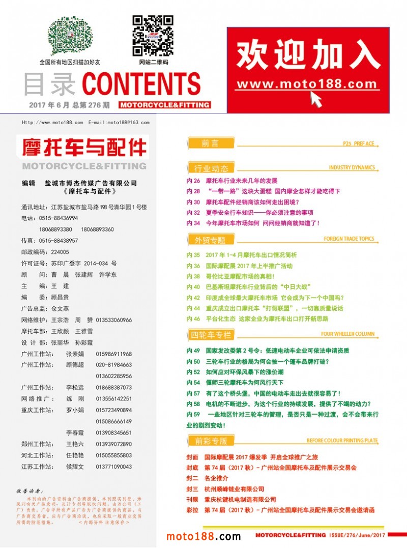 2017.6月《摩托车/电动车与配件》杂志,欢迎大家阅读