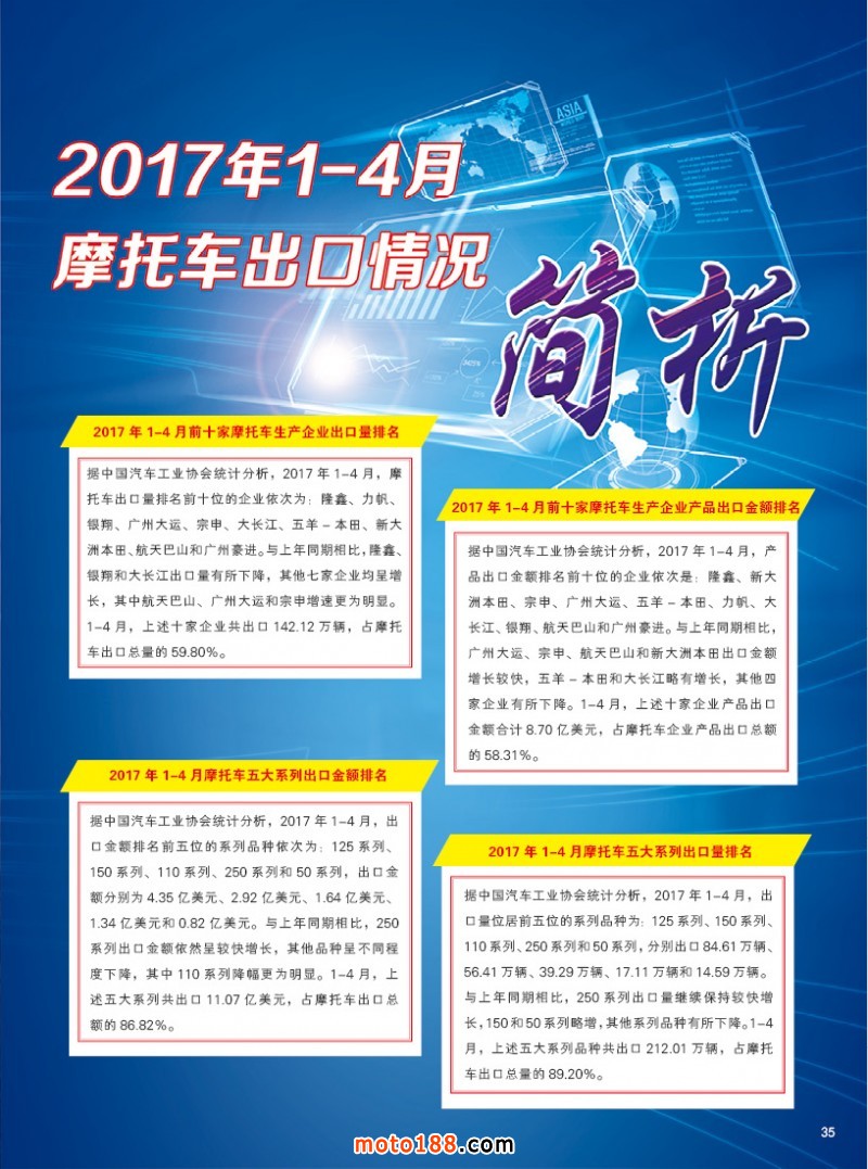 内35 2017年1-4月摩托车出口情况简析