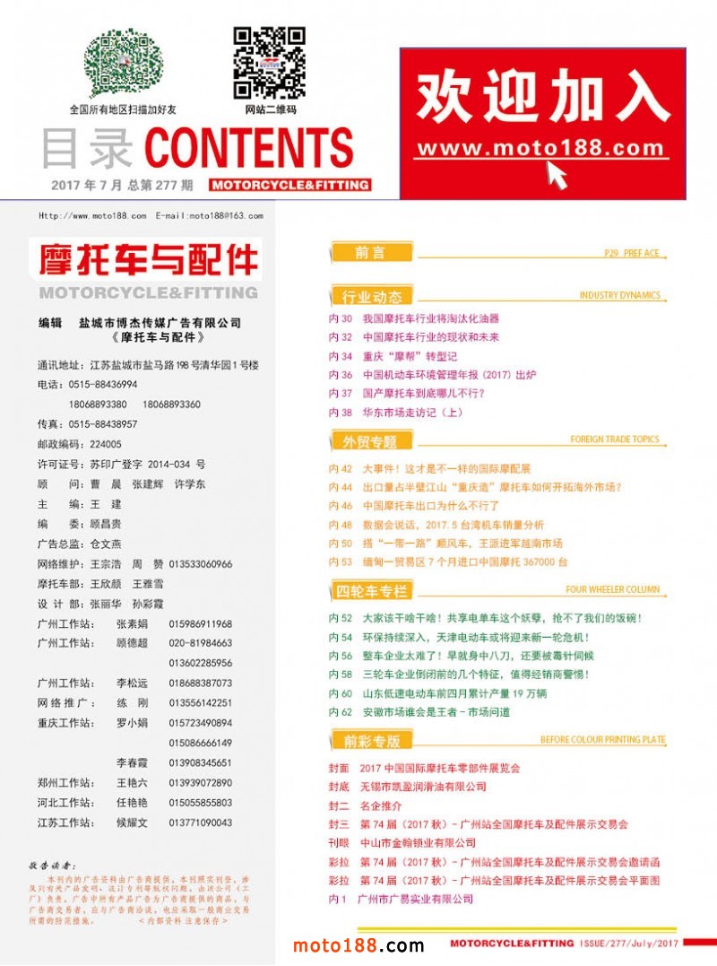 2017.7月《摩托车/电动车与配件》杂志,欢迎大家阅读