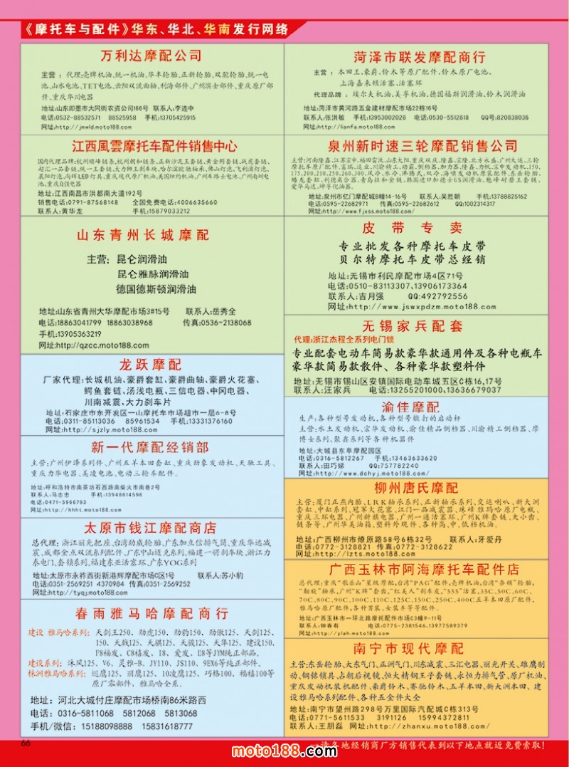 鉴于国内摩配市场经过长期调整后,也相对集中,我们调整了发行模式,实现了对全国