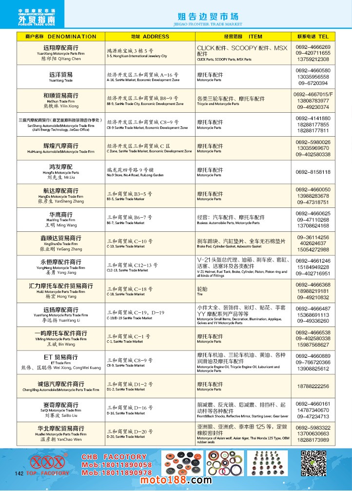 由《摩托车与配件》杂志社,在国内首次独家推出的《中国摩托车配件外贸市场指南》工具书正式面世。这是一本专业定位于外贸企业的工具书,随着一带一路发展战略的推进,更多企业走出国门,将产品销往世界各地,本书收集了国内主要从事摩托车配件外贸的工厂、商家、国外部分驻华采购机构等资料汇总而成.