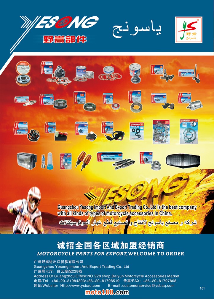由《摩托车与配件》杂志社,在国内首次独家推出的《中国摩托车配件外贸市场指南》工具书正式面世。这是一本专业定位于外贸企业的工具书,随着一带一路发展战略的推进,更多企业走出国门,将产品销往世界各地,本书收集了国内主要从事摩托车配件外贸的工厂、商家、国外部分驻华采购机构等资料汇总而成.