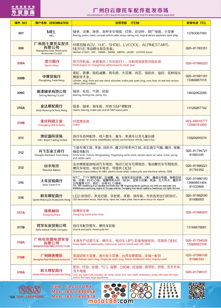由《摩托车与配件》杂志社,在国内首次独家推出的《中国摩托车配件外贸市场指南》工具书正式面世。这是一本专业定位于外贸企业的工具书,随着一带一路发展战略的推进,更多企业走出国门,将产品销往世界各地,本书收集了国内主要从事摩托车配件外贸的工厂、商家、国外部分驻华采购机构等资料汇总而成.