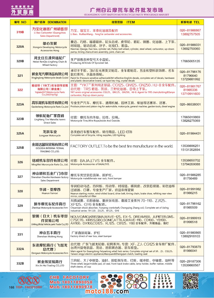 由《摩托车与配件》杂志社,在国内首次独家推出的《中国摩托车配件外贸市场指南》工具书正式面世。这是一本专业定位于外贸企业的工具书,随着一带一路发展战略的推进,更多企业走出国门,将产品销往世界各地,本书收集了国内主要从事摩托车配件外贸的工厂、商家、国外部分驻华采购机构等资料汇总而成.