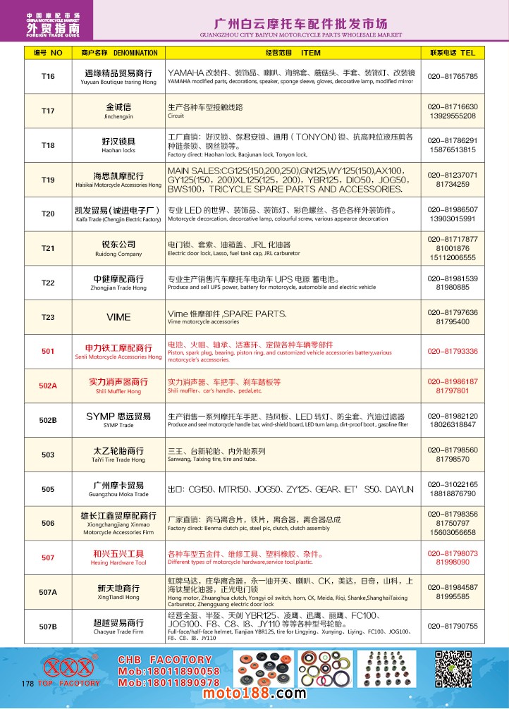由《摩托车与配件》杂志社,在国内首次独家推出的《中国摩托车配件外贸市场指南》工具书正式面世。这是一本专业定位于外贸企业的工具书,随着一带一路发展战略的推进,更多企业走出国门,将产品销往世界各地,本书收集了国内主要从事摩托车配件外贸的工厂、商家、国外部分驻华采购机构等资料汇总而成.