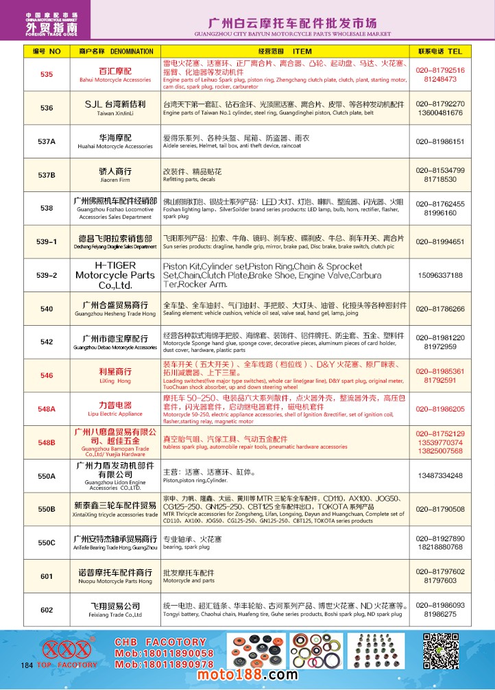 由《摩托车与配件》杂志社,在国内首次独家推出的《中国摩托车配件外贸市场指南》工具书正式面世。这是一本专业定位于外贸企业的工具书,随着一带一路发展战略的推进,更多企业走出国门,将产品销往世界各地,本书收集了国内主要从事摩托车配件外贸的工厂、商家、国外部分驻华采购机构等资料汇总而成.