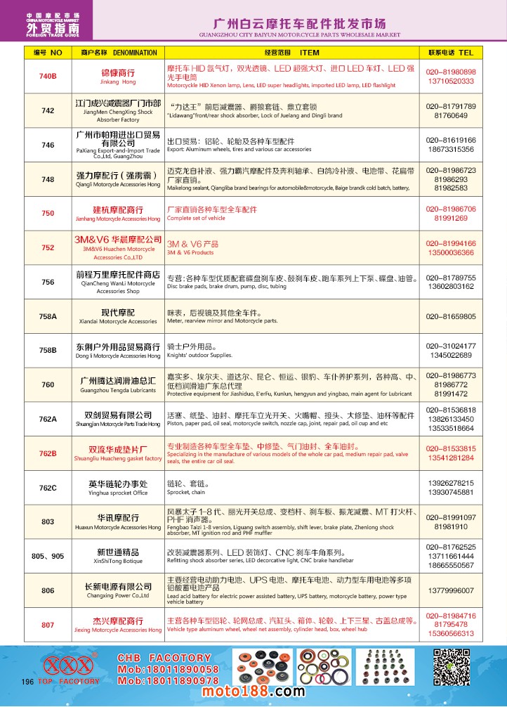 由《摩托车与配件》杂志社,在国内首次独家推出的《中国摩托车配件外贸市场指南》工具书正式面世。这是一本专业定位于外贸企业的工具书,随着一带一路发展战略的推进,更多企业走出国门,将产品销往世界各地,本书收集了国内主要从事摩托车配件外贸的工厂、商家、国外部分驻华采购机构等资料汇总而成.
