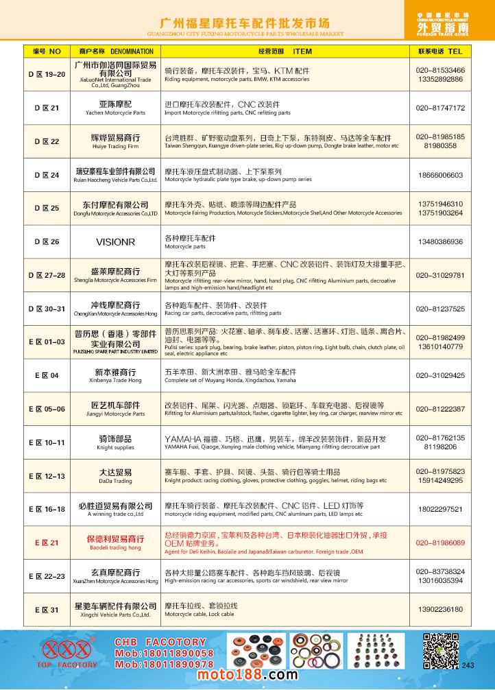 《中国摩托车配件外贸市场指南》和我们以前所编的《国内六大地区的市场指南》有所不同,具有如下的特点: