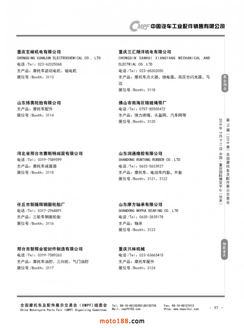 内97 第74届(2017秋)全国摩托车及配件展示交易会-广州站参展企业名录
