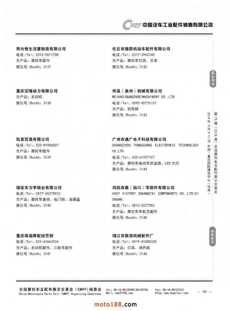 内99 第74届(2017秋)全国摩托车及配件展示交易会-广州站参展企业名录