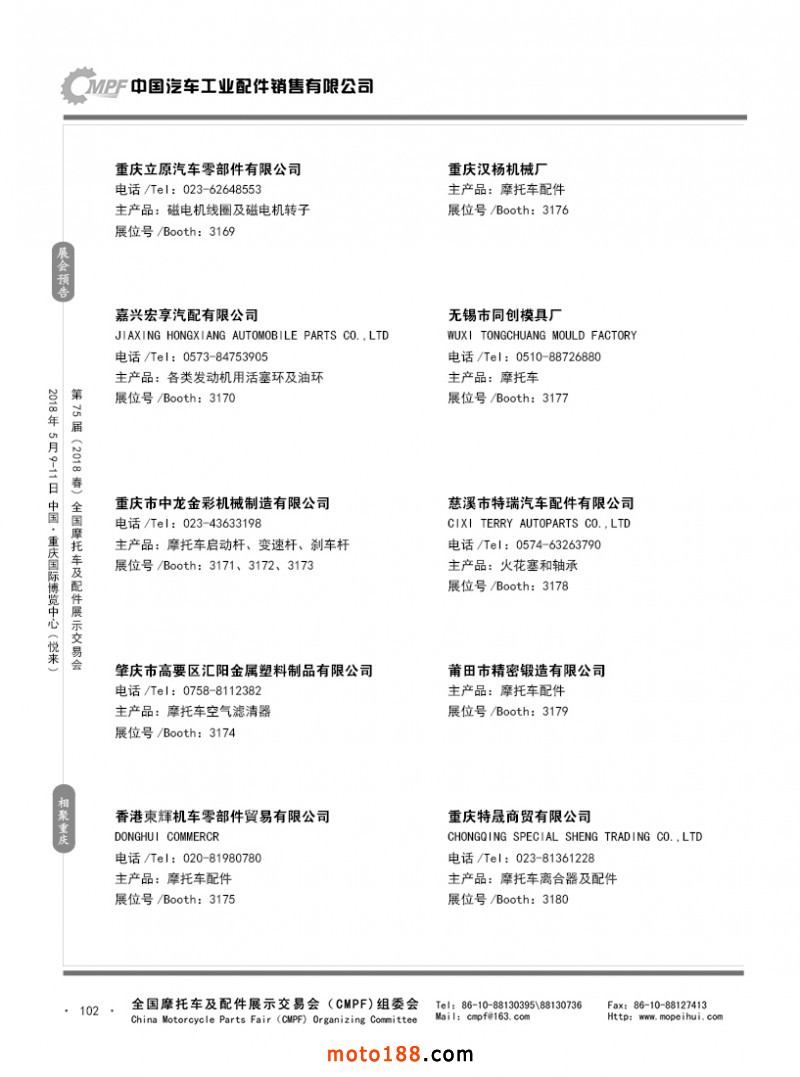 内102 第74届(2017秋)全国摩托车及配件展示交易会-广州站参展企业名录