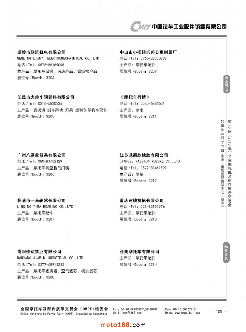 内105 第74届(2017秋)全国摩托车及配件展示交易会-广州站参展企业名录