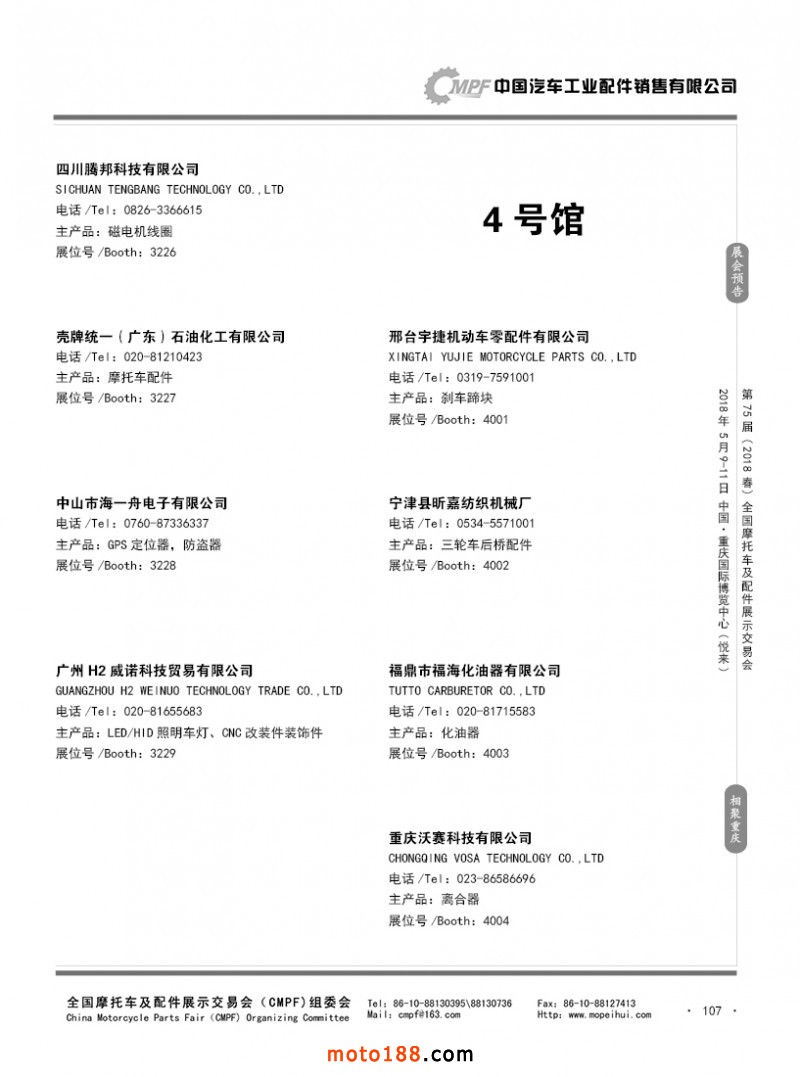 内107 第74届(2017秋)全国摩托车及配件展示交易会-广州站参展企业名录