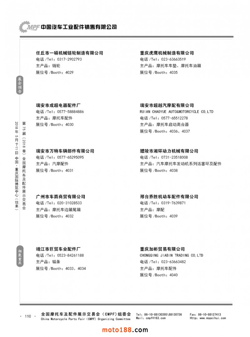 内110 第74届(2017秋)全国摩托车及配件展示交易会-广州站参展企业名录