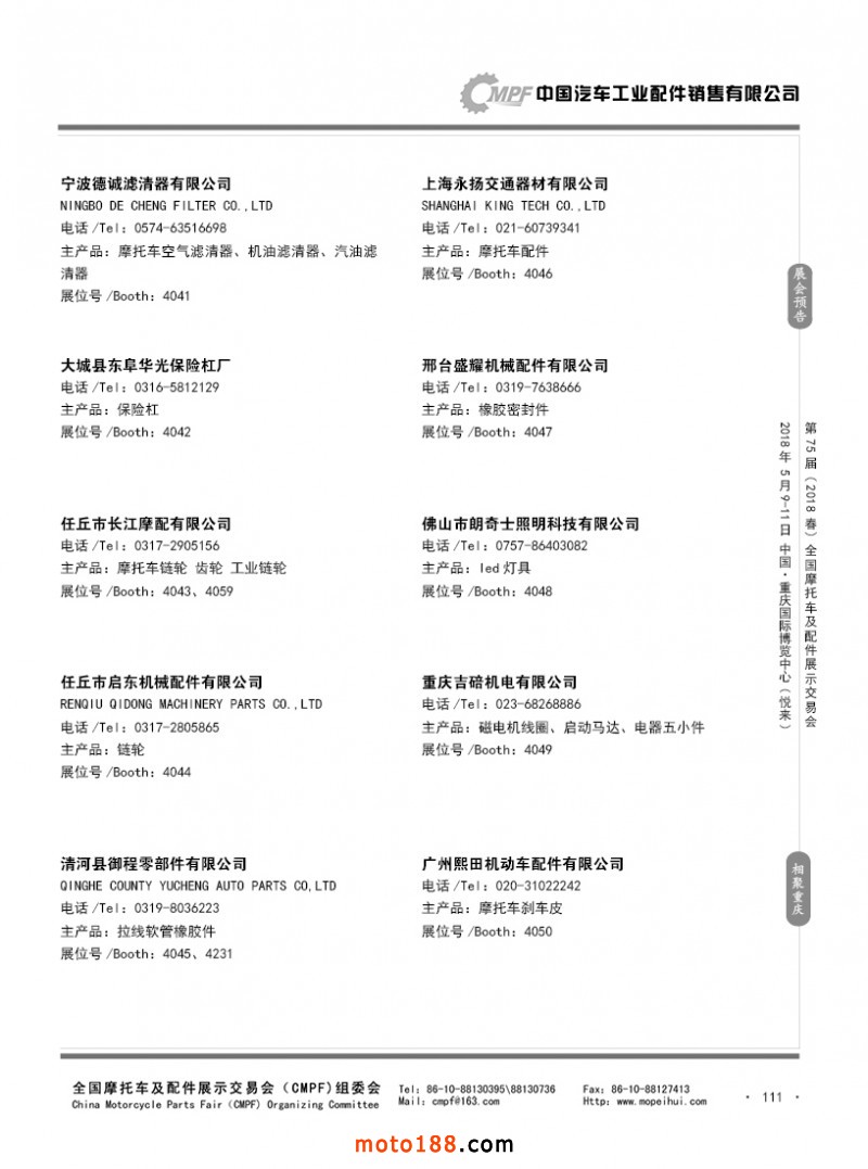 内111 第74届(2017秋)全国摩托车及配件展示交易会-广州站参展企业名录