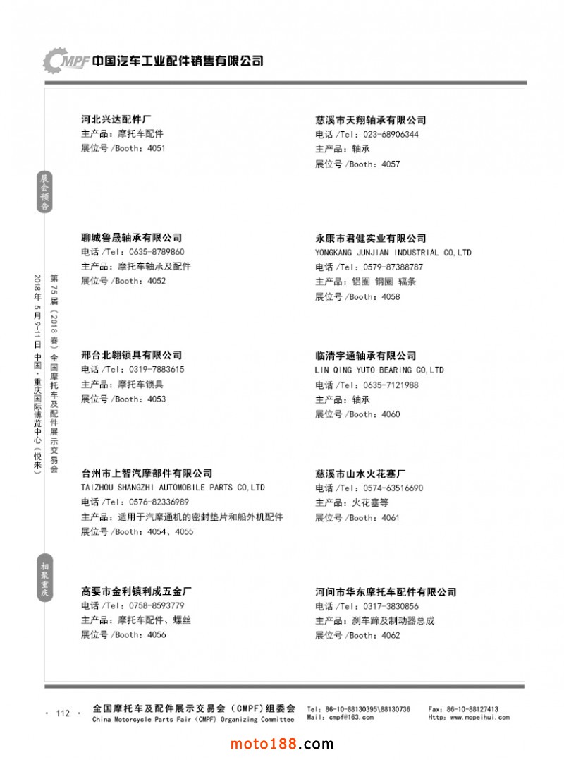 内112 第74届(2017秋)全国摩托车及配件展示交易会-广州站参展企业名录