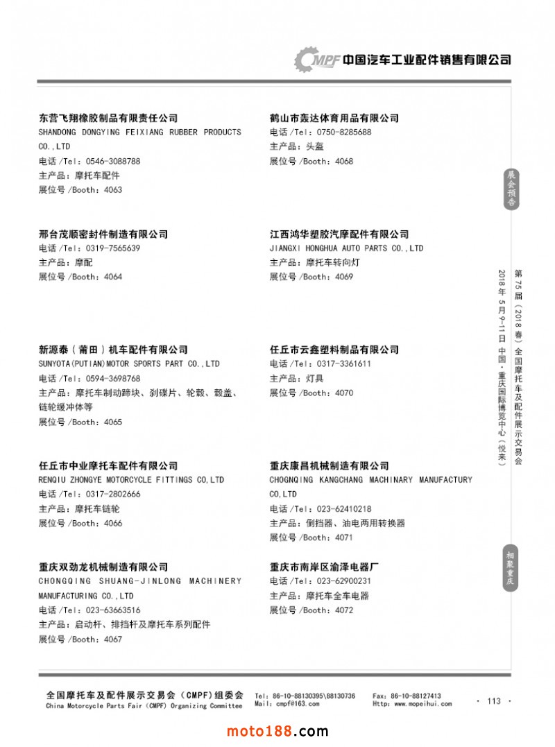 内113 第74届(2017秋)全国摩托车及配件展示交易会-广州站参展企业名录