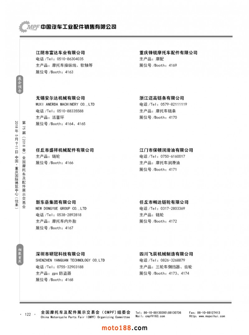 内122 第74届(2017秋)全国摩托车及配件展示交易会-广州站参展企业名录