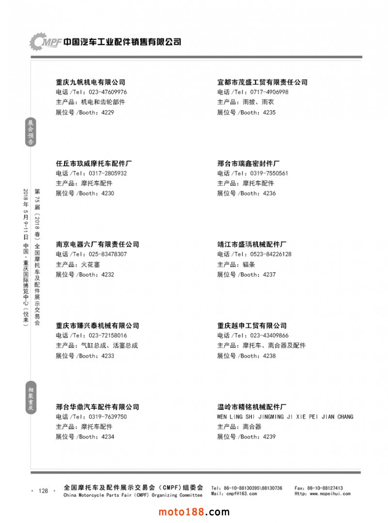 内128 第74届(2017秋)全国摩托车及配件展示交易会-广州站参展企业名录