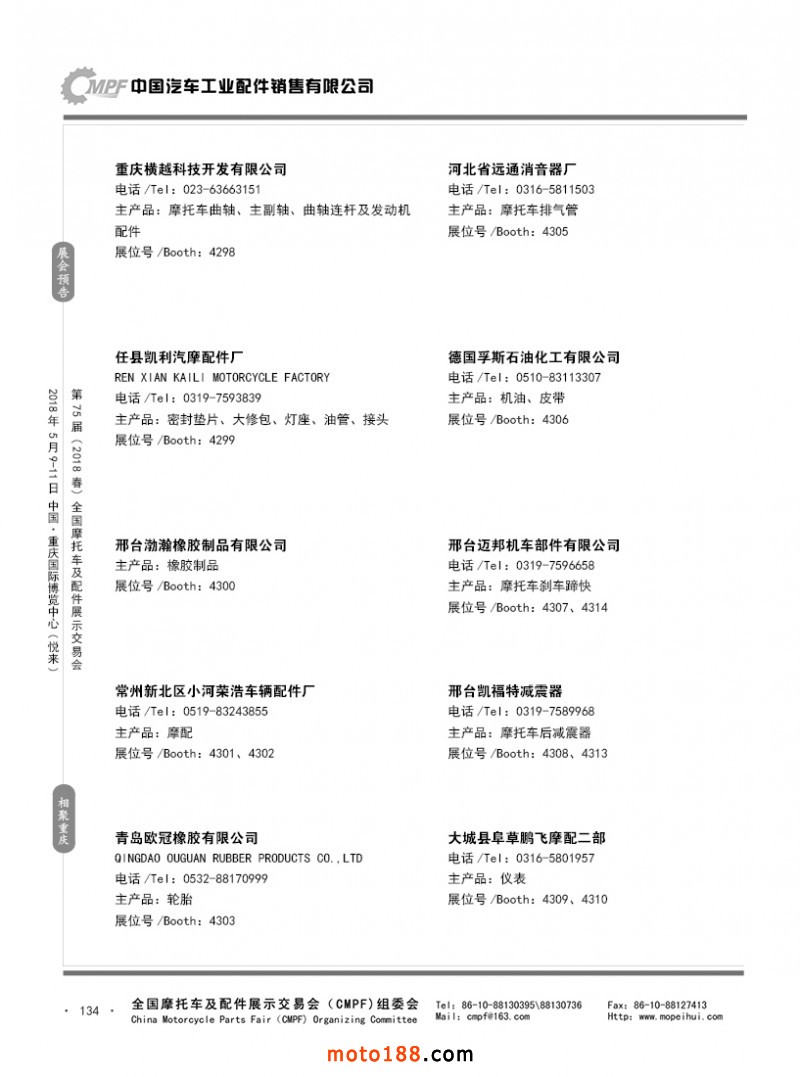 内134 第74届(2017秋)全国摩托车及配件展示交易会-广州站参展企业名录