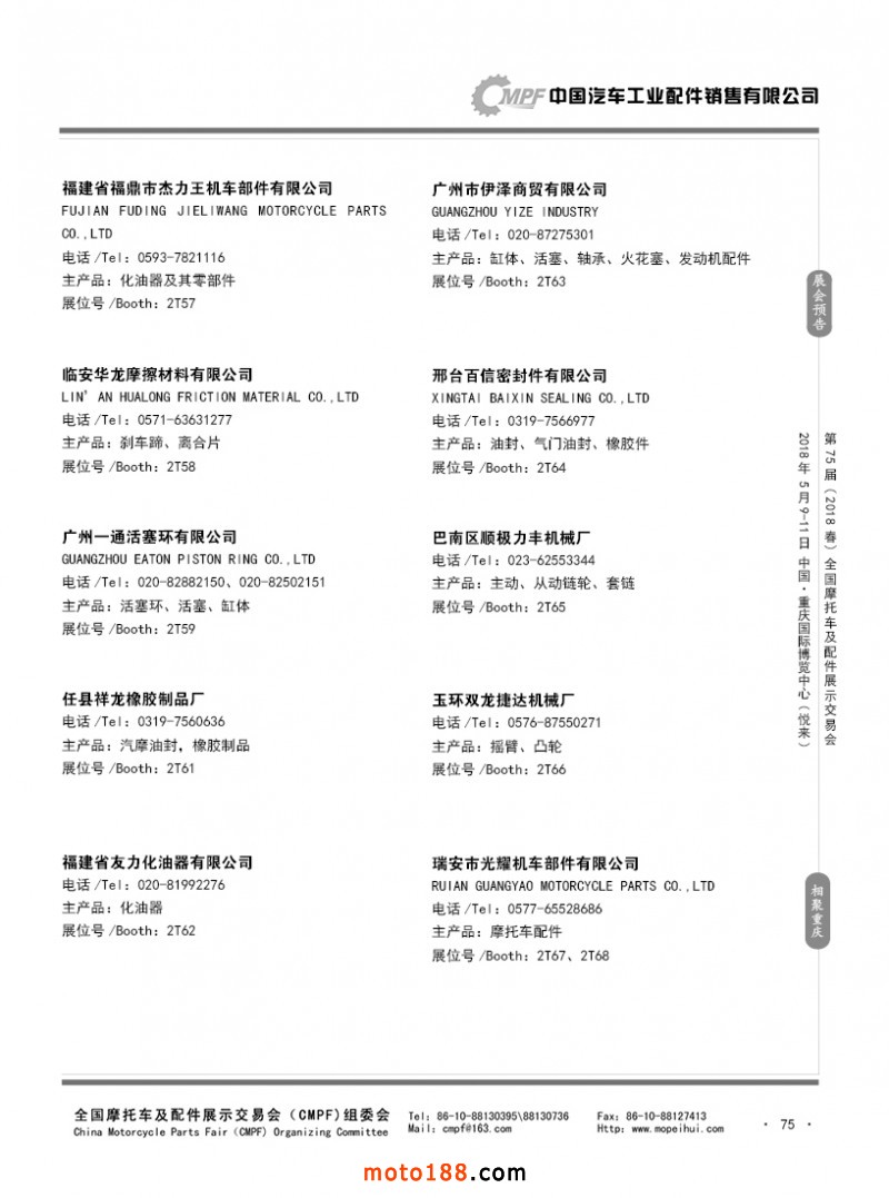 内75 第74届(2017秋)全国摩托车及配件展示交易会-广州站参展企业名录