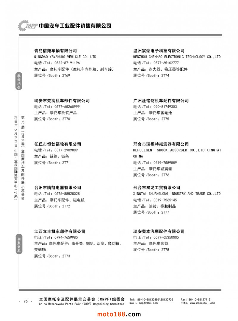 内76 第74届(2017秋)全国摩托车及配件展示交易会-广州站参展企业名录