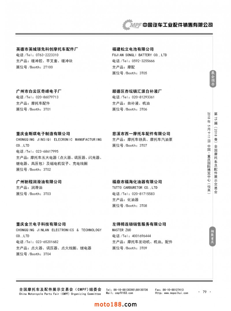 内79 第74届(2017秋)全国摩托车及配件展示交易会-广州站参展企业名录