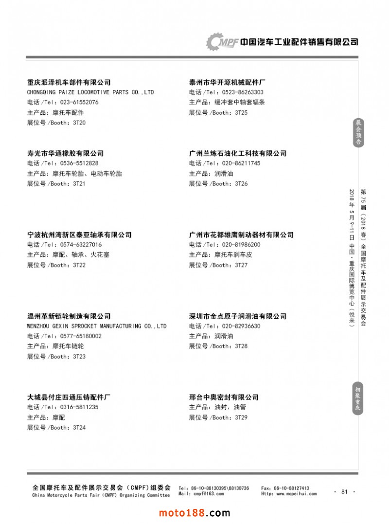 内81 第74届(2017秋)全国摩托车及配件展示交易会-广州站参展企业名录