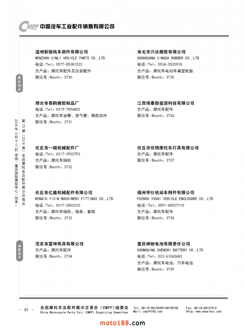 内82 第74届(2017秋)全国摩托车及配件展示交易会-广州站参展企业名录