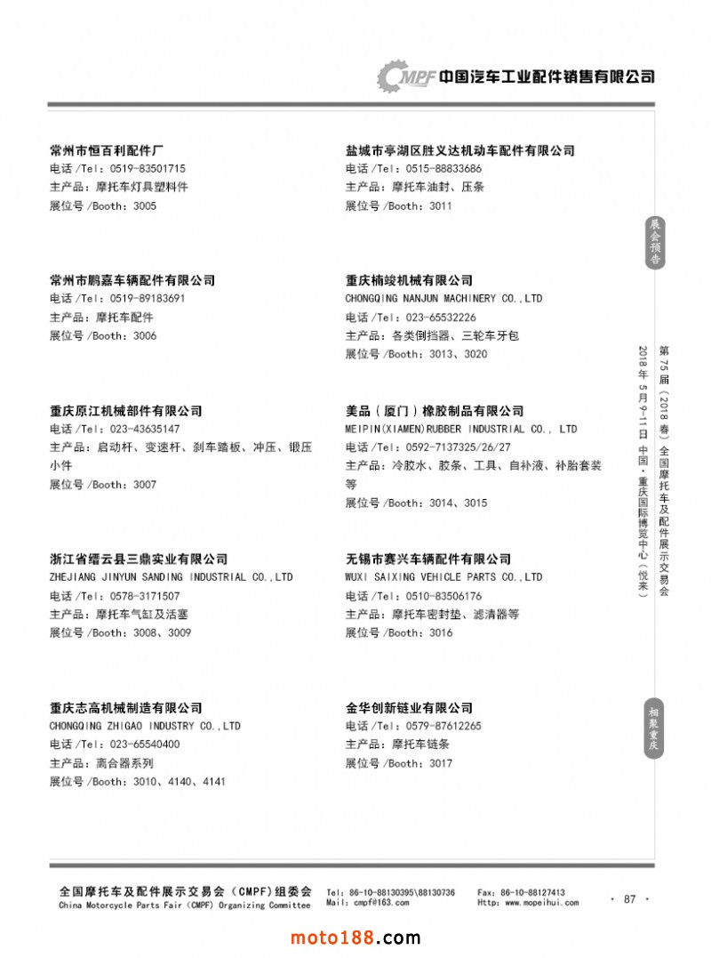 内87 第74届(2017秋)全国摩托车及配件展示交易会-广州站参展企业名录