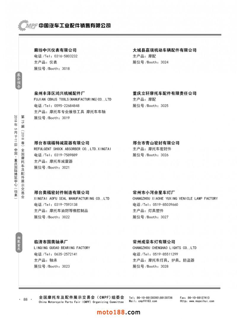 内88 第74届(2017秋)全国摩托车及配件展示交易会-广州站参展企业名录