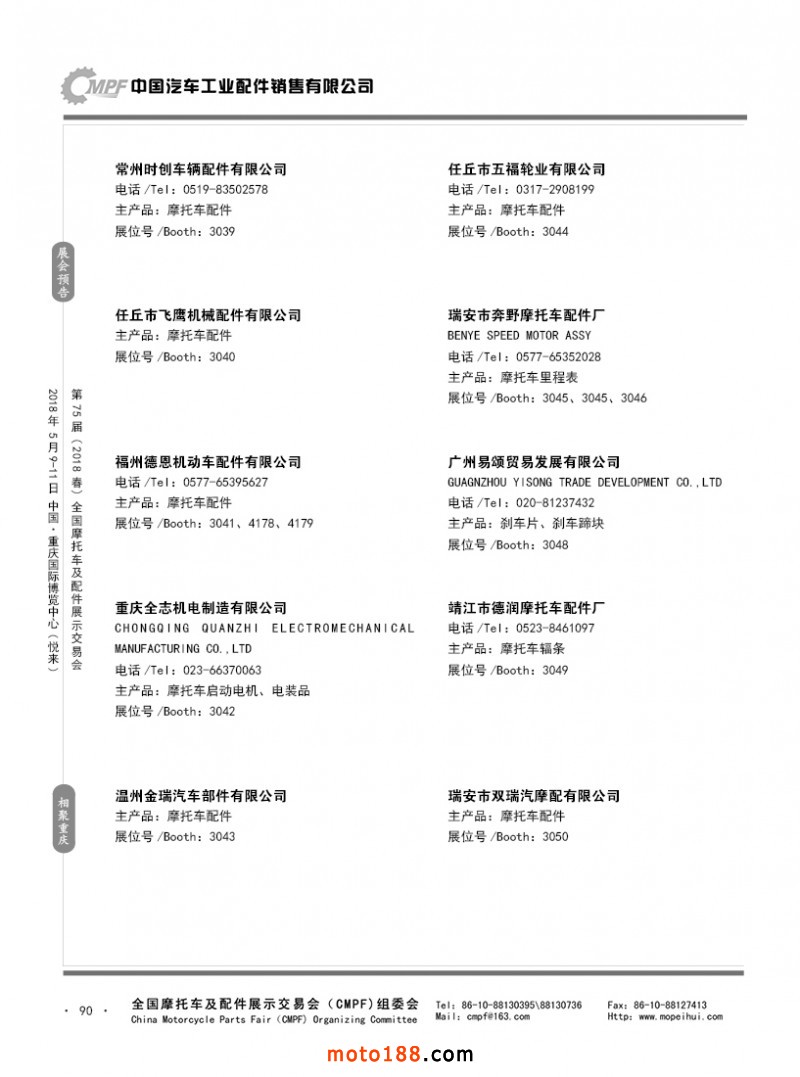 内90 第74届(2017秋)全国摩托车及配件展示交易会-广州站参展企业名录