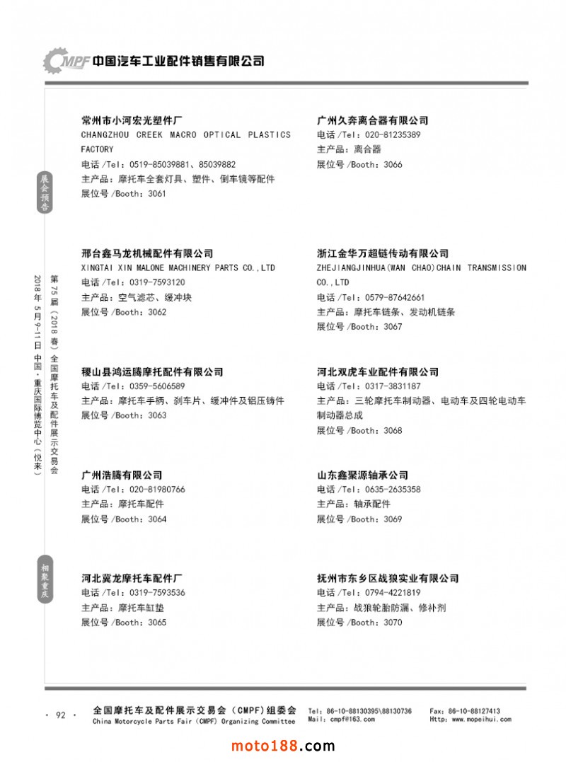 内92 第74届(2017秋)全国摩托车及配件展示交易会-广州站参展企业名录