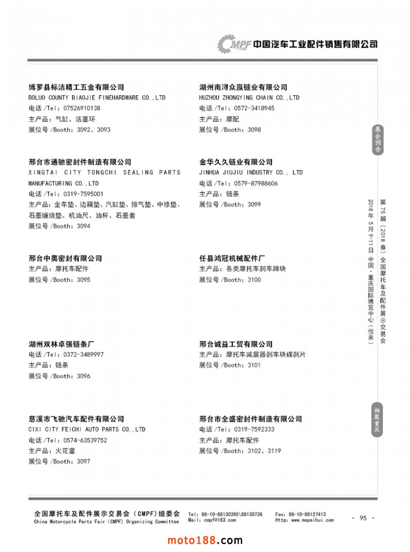 内95 第74届(2017秋)全国摩托车及配件展示交易会-广州站参展企业名录