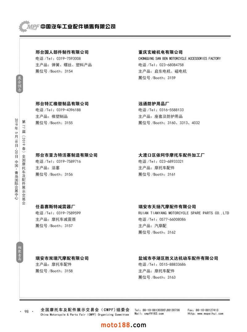 内98 第76届(2018秋)全国摩托车及配件展示交易会-广州站参展企业信息