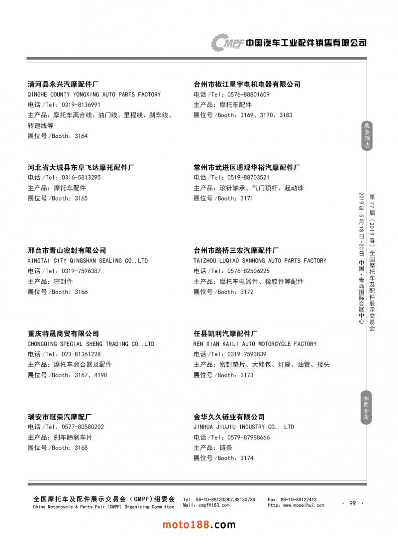 内99 第76届(2018秋)全国摩托车及配件展示交易会-广州站参展企业信息