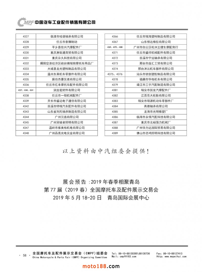 内58 第76届(2018秋)全国摩托车及配件展示交易会-广州站参展单位名录第76届(2018秋)全国摩托车及配件展示交易会-广州站参展单位名录