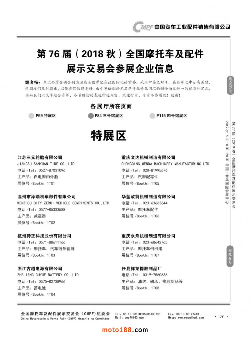 内59 第76届(2018秋)全国摩托车及配件展示交易会-广州站参展企业信息