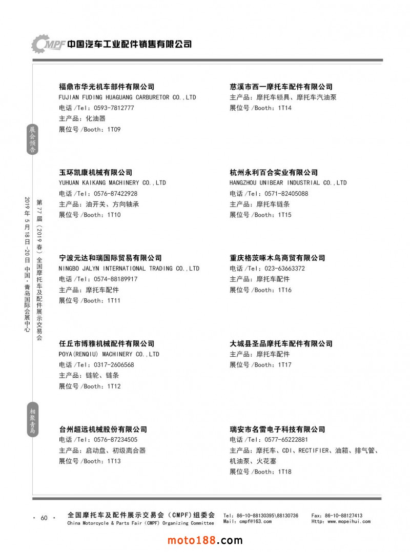 内60 第76届(2018秋)全国摩托车及配件展示交易会-广州站参展企业信息