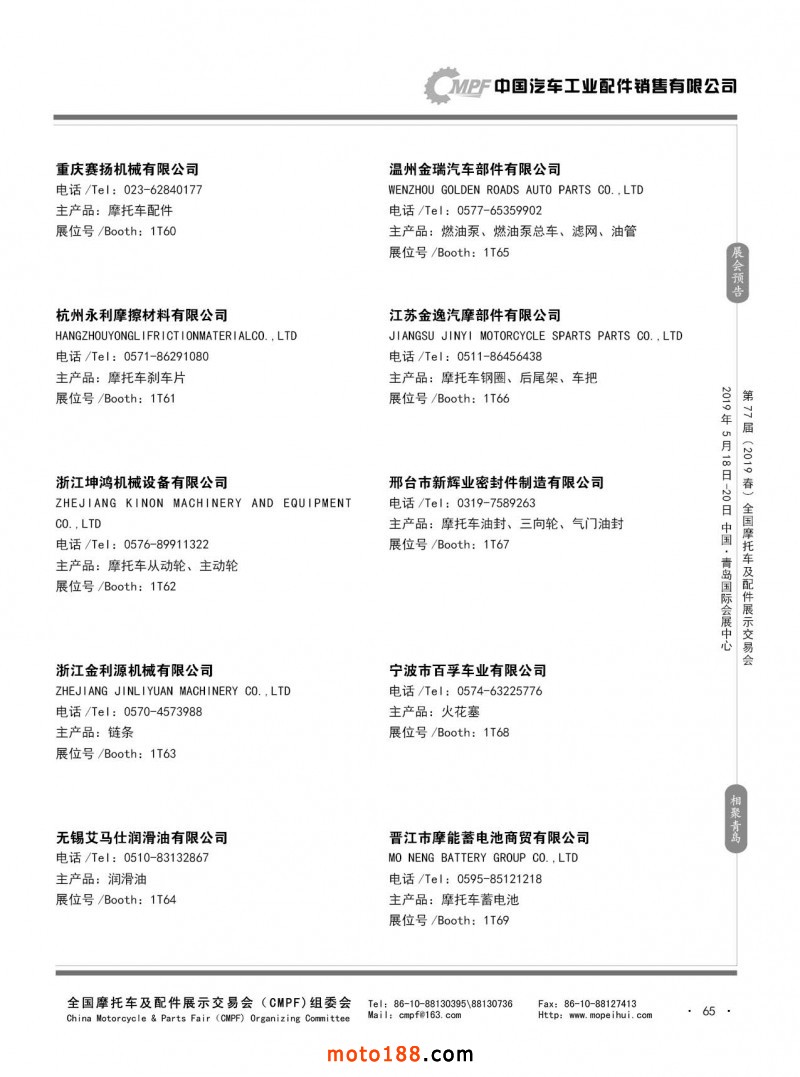 内65 第76届(2018秋)全国摩托车及配件展示交易会-广州站参展企业信息
