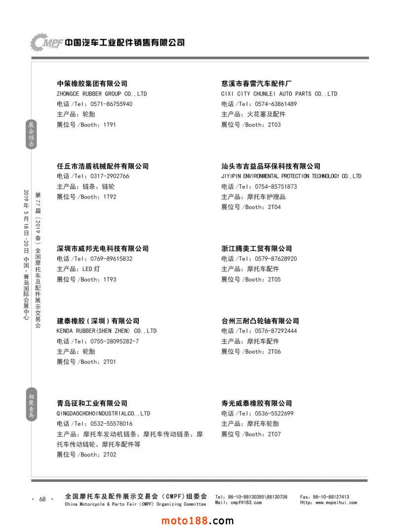 内68 第76届(2018秋)全国摩托车及配件展示交易会-广州站参展企业信息