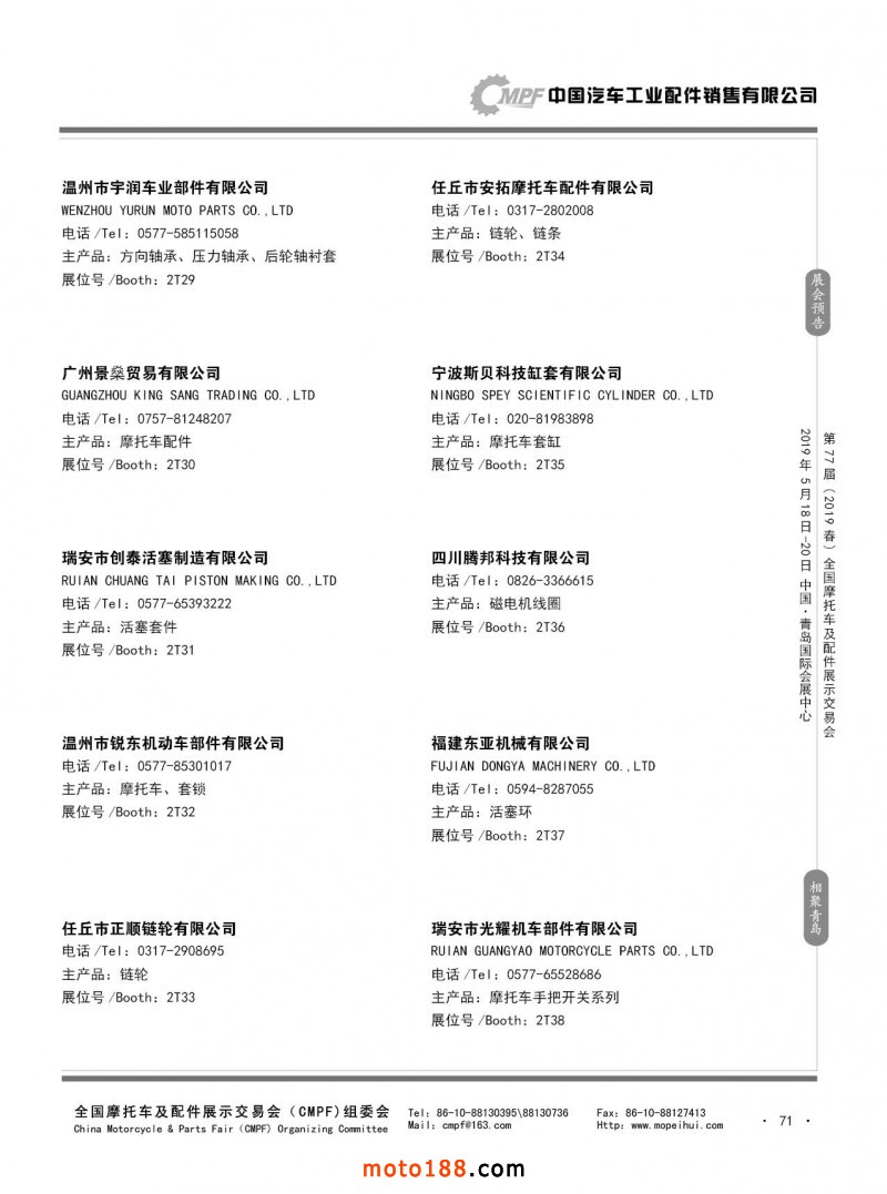 内71 第76届(2018秋)全国摩托车及配件展示交易会-广州站参展企业信息